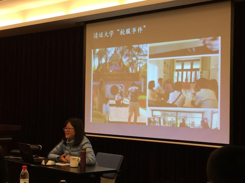 龚老师最后谈到了今年7月,她在泰国清迈开展调查,惊讶于中国游客带来的“文化震撼”:中国游客对清迈的城市空间产生了很大的影响。她关注到中国游客与泰国当地人发生的一些冲突,比如清迈大学的“校服事件”。那么,文化欣赏中的文化冲突是怎么发生的?是出于道德问题吗?还是由于文化误解造成的?为此,她以中国游客的身份进行田野调查,并进一步提出问题,即:泰国当地人如何看待中国游客?中国游客如何体验泰国文化?是不是有可能与泰国学者一起生产合作民族志?她还认为全球化时代的跨国流动带来了“我”与“他者”之间界限的模糊,游客、当地的政府部门、中国驻外机构、中文学习机构、华人社团、旅游业从业者、媒体、当地居民和学者都应该成为这一新课题的研究对象。