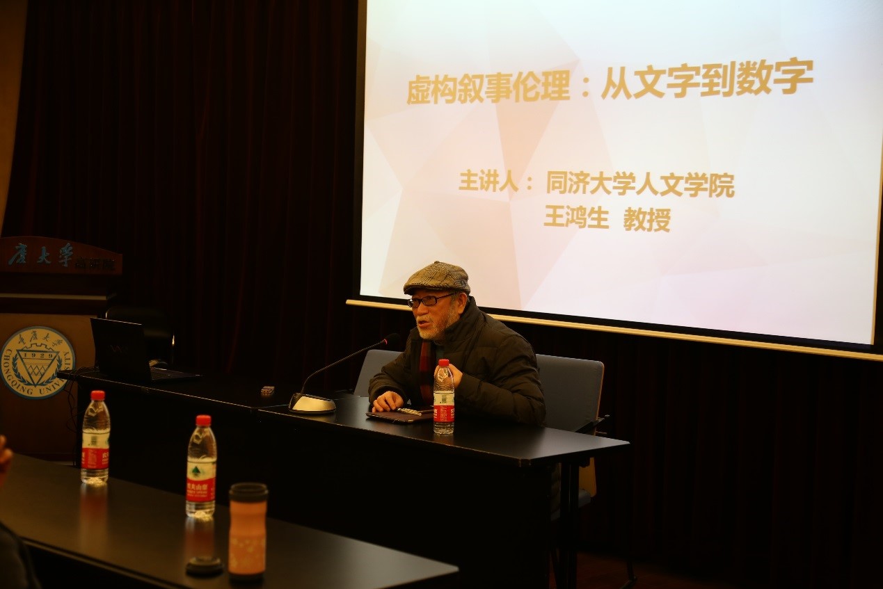 2017年12月15日晚7时,同济大学人文学院王鸿生教授在文字斋报告厅作了题为“虚构叙事伦理:从文字到数字”的讲座。此次讲座由bt365官方网站(以下简称“高研院”)郭春林教授主持。高研院、博雅学院师生及其他校内外文学爱好者参与了此次讲座。
