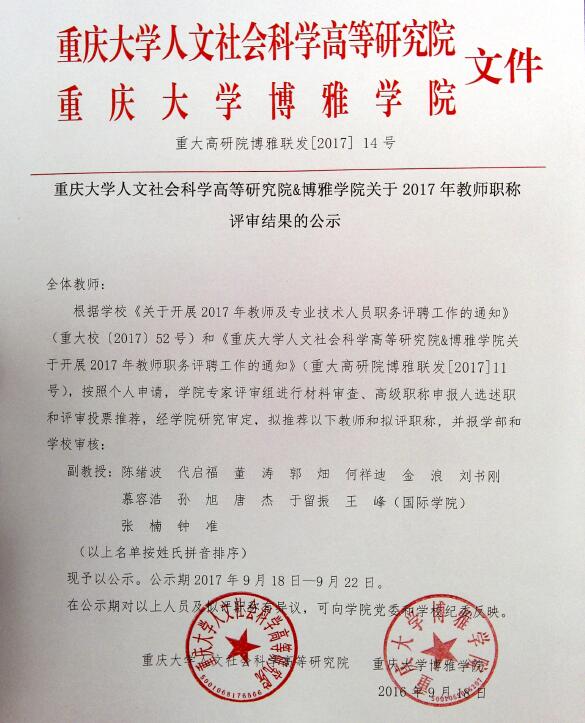 • 【公示】学院关于2017年教师职称评审结果的公示