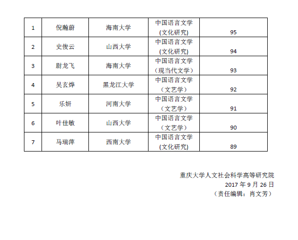 重庆大学高研院接收2018年推免生复试成绩公示