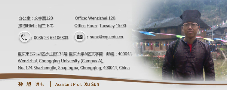 孙旭,新疆五家渠人,人类学博士,bt365官方网站讲师。自2005年起就读于中山大学,先后在中山大学人类学系获得法学学士(2009)、法学硕士(2011)和法学博士学位(2014)。博士论文关注贵州东南部都柳江流域侗族的社会组织、人群关系及其历史变迁,已有相关论文发表。近期研究兴趣为侗族地区的交通建设、外出务工与地方社会文化转型,同时开始关注饮食与文化的相关议题。