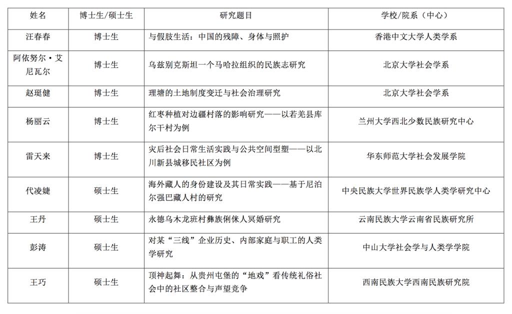 为鼓励在校研究生从事富有深度的专题性田野调查,增强专业方法训练,着眼学术前沿问题,促进理论与方法创新,bt365官方网站人类学研究中心(简称“重大高研院人类学中心”)于2013年创立“中国人类学博士论文田野调查奖助金”。今年已是第5届,由“重大高研院人类学中心”与“南方科技大学社会科学高等研究院”联合主办。从本届起,资助范围由博士生扩展到硕士生,名称随之更改为“中国人类学研究生田野调查奖助金”。奖助金主要用于资助在校的人类学民族学专业硕士和博士研究生开展学位论文的田野调查。
