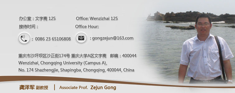 龚泽军,四川威远人,文学学士(四川三峡学院,1999)、文学硕士(贵州大学,2002)、文学博士(四川大学,2005),bt365官方网站文学与文化研究中心副教授。