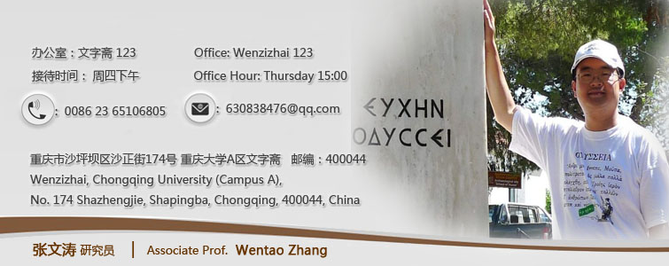 张文涛,四川简阳人,bt365官方网站特聘研究员(“百人计划”学者),博士生导师,古典学研究中心主任。中国比较古典学学会秘书长,国际柏拉图学会(IPS)会员、国际希腊哲学协会(IAGP)会员、中国比较文学学会会员、中华全国美学学会会员。曾先后就读于南京大学地球科学系(1996年理学学士)、四川师范大学中文系(1999年文学硕士)、中山大学哲学系(2008年哲学博士)。希腊奥纳西斯基金会高级访问学者(2010)。学术兴趣包括西方哲学、西方古典政治哲学、西方古典学、西方古典诗学等。目前主编“智术师集”、“普鲁塔克集”、“自然哲人集”等文丛,主编《智术师与雅典启蒙》、《普鲁塔克与柏拉图》等文选。